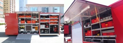 自裝卸式消防車主要用于將裝有各類消防裝備的模塊(器材箱)快速運抵災(zāi)害現(xiàn)場,為災(zāi)害現(xiàn)場的救援提供有力的保障。對于處置不同類型的重大災(zāi)害事故,比如:地震及地質(zhì)災(zāi)害,洪水、臺風(fēng)、冰凍等自然災(zāi)害及大 型城市火、石油化工火災(zāi)、森林火災(zāi)和礦難等,受限于現(xiàn)場設(shè)備、場地等因素,可分別配置不同的消防裝備模塊箱,以便于快速運抵災(zāi)害現(xiàn)場,實施針對性的救援。